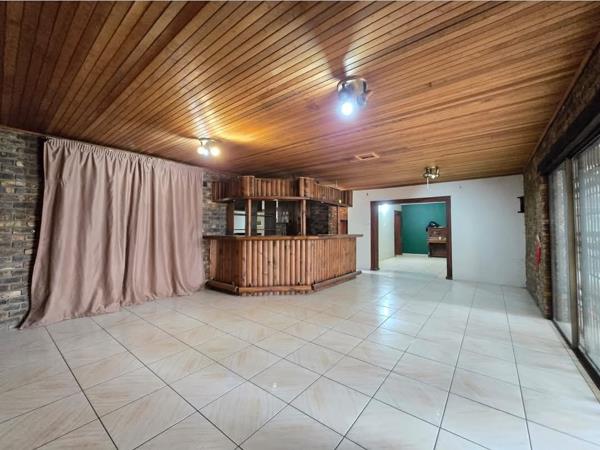 This spacious 3 bedroom home boasts 2 neat bathrooms, 2 guest toilets, living and dining room areas, seperate study room, neat spacious kitchen with lots of cupboard space, indoor entertainment area with built in braai and bar. This home has a large pet friendly yard and comes with a 5250l JoJo tank, staff quarters, 4 garages and is fibre ready. Electricity is prepaid and utilities to be billed.