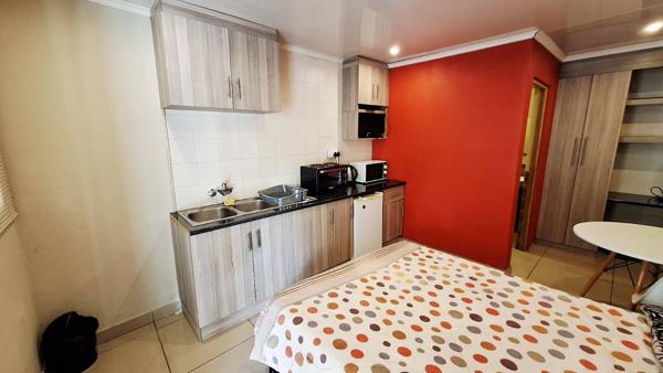 It has an open-plan bedroom with a small kitchen area equipped with all your needs, and a separate private bathroom.