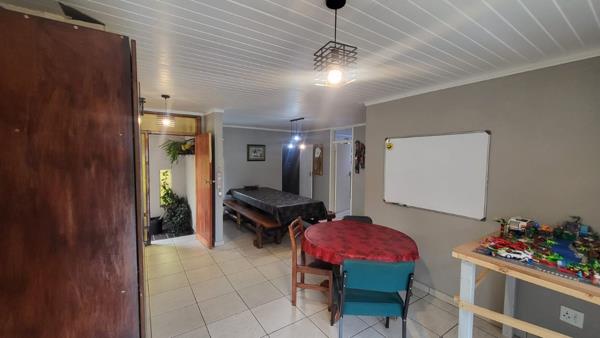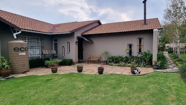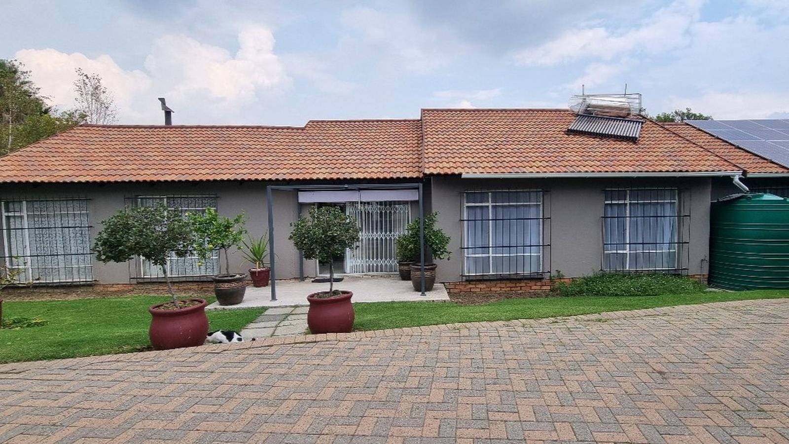 Additional features include a study, storeroom, domestic room with toilet, double garage, carport, borehole, 2 x JoJo tanks, and an alarm system.