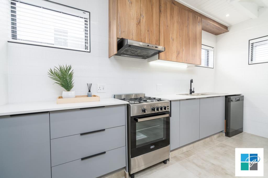 The open-plan layout welcomes you with a sleek, modern kitchen fitted with a gas stove perfect for energy efficiency and cooking during load shedding. The kitchen flows seamlessly into the spacious living area, creating the ideal space for family time or entertaining guests. From here, sliding doors open onto a private patio with a built-in braai and an enclosed yard, perfect for relaxed weekends or hosting friends.