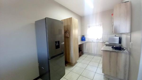 The apartment boasts a spacious open-plan TV room area leading to a lovely kitchen with a gas stove and loads of cupboard space.