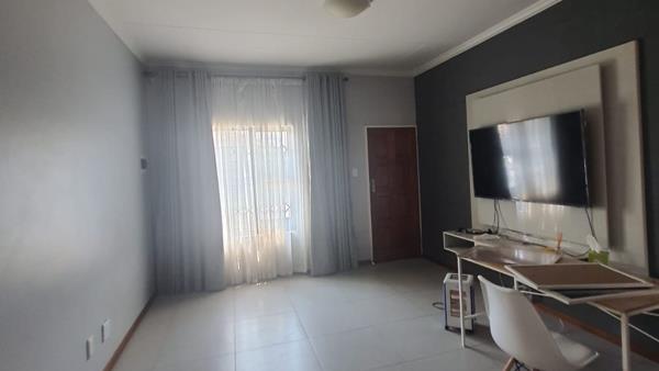 Modern design featuring an open-plan living area and a stunning accent wall adorned with elegant wallpaper.