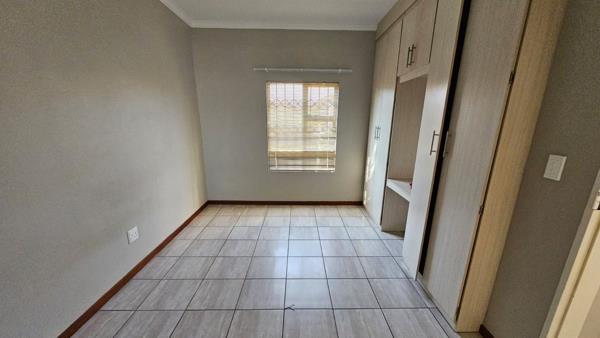 Neat 3 bedroom townhouse with modern finishes situated in a security complex. This complex has great security features that include electric fencing around the complex perimeter, controlled access at the gate and CCTV cameras. The complex also offers a playpark for kids as well as back-up generators to assist during power outages.