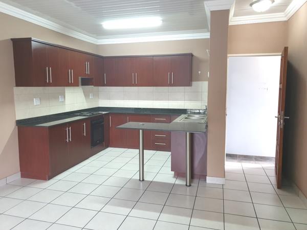 Marloth Street is situated in town. The complex is small and only has 16 units. The unit is on the 1st floor with one set of stairs. It offers modern 2 bedrooms and 1 bathrooms with a carport. Pre-Paid electricity and water are included with reasonable usage. No pets allowed.