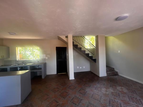 Downstairs you have the kitchen and lounge, upstairs you have two bedrooms and one bathroom.