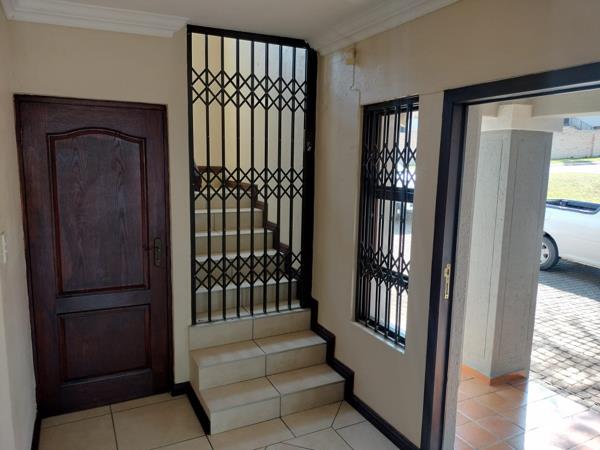 OppieKoppie Estate offers a cosy 3 Bedroom, 2 Bathroom unit for rent, On the lower level you have a guest toilet, store room, open plan lounge and dining room . Beautiful kitchen with built in bar and braai area that walks out on a patio.