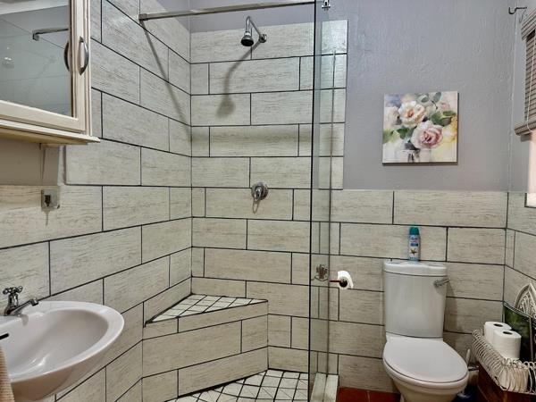 The study flows to the back yard with a sliding- and trelli doors and has a lovely backyard with pool and lapa.