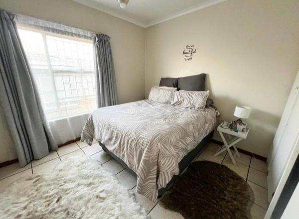 This practical 2-bedroom, 1-bathroom unit in Aerorand, Middelburg, offers comfortable living within a secure complex. The open-plan layout seamlessly connects the lounge and kitchen, featuring white cabinetry, integrated appliances, and a convenient breakfast bar. Tiled flooring extends throughout, ensuring easy maintenance. Both bedrooms include built-in wardrobes, providing ample storage. The property benefits from a dedicated garage and an additional parking space. Enhanced security features, including electric fencing and security gates, offer peace of mind. This well-located rental is ideal for those seeking a functional and secure home in South Africa.