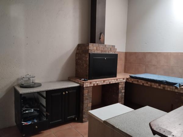 This family home offers a lounge area with a built-in braai and bar. The outside lapa, which overlooks the swimming pool, is great for entertaining guests, featuring another built-in braai.