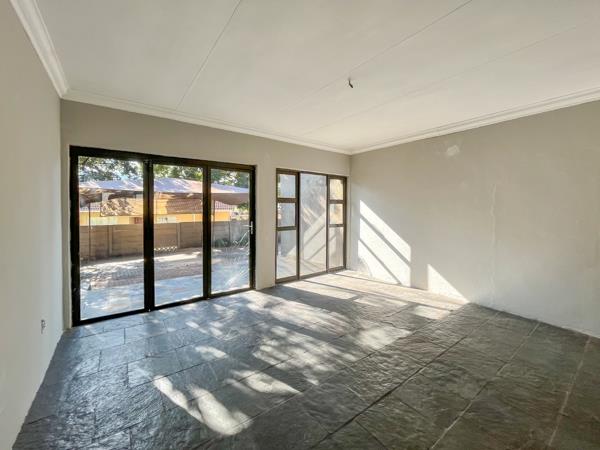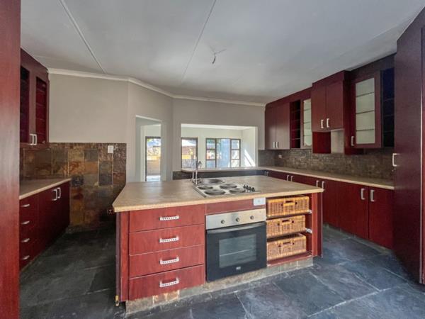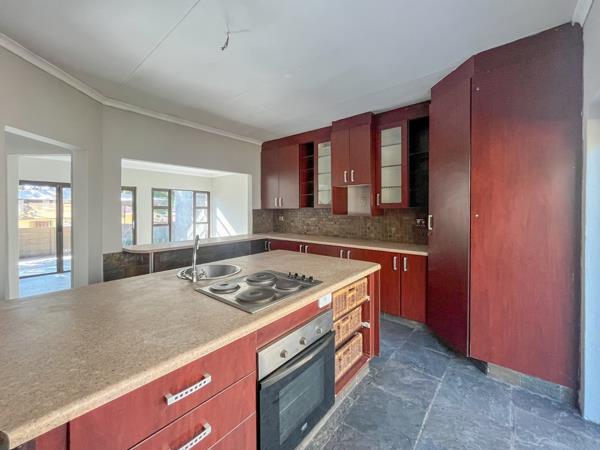 The home features 3 generously sized bedrooms, 2 bathrooms of which the main bedroom is ensuite, a spacious kitchen with a separate scullery, and a breakfast nook overlooking the lounge area for an open-plan feel. The large dining room can also serve as an office or be converted into a fourth bedroom, offering versatile living options.