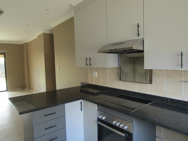 This inviting home features three sunny bedrooms, including a main bedroom with an en-suite bathroom. The open-plan living area flows to a covered patio with a built-in braai, perfect for entertaining or relaxing outdoors.