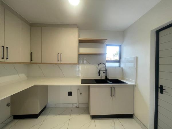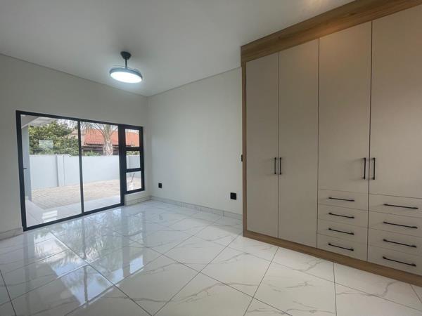 The property features a covered patio with a built-in braai, ideal for entertaining and a spacious private garden perfect for outdoor enjoyment.