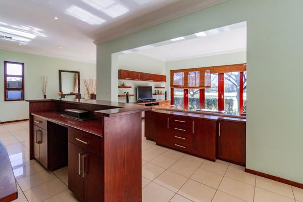 North-facing Family Home. Enjoy majestic views of the Magaliesberg Mountains, the golf course, and the internal lake from all the living areas and the patio, ideal for hosting family and guests.