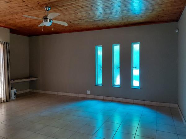This spacious home offers 2 bedrooms a study, kitchen and lounge area It includes 2 covered parking with additional open parking available. The property features a garden and a shared pool with another tenant. Water is supplied from a borehole and included in the rent, Electricity is prepaid. Fiber is available in the area. The property is pet friendly but not suitable for cats.