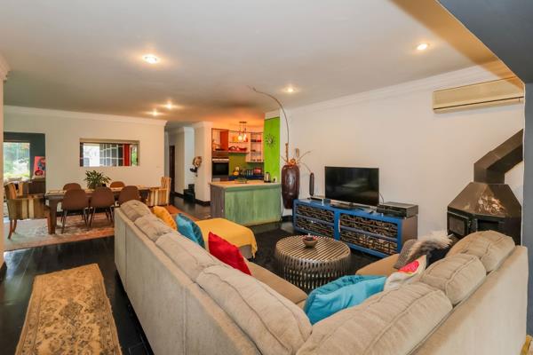 Through the entrance hall, the open-plan living area includes a dining area, lounge and kitchen. An additional lounge area offers privacy, with large windows overlooking the garden and welcoming natural light.