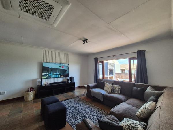 The light filled, open plan kitchen and living area create a welcoming space, complete with an airconditioner. The living area flows seamlessly onto a balcony with a built in braai, perfect for relaxed entertaining. An additional feature include, a single automated lock up garage and extra undercover parking bay.