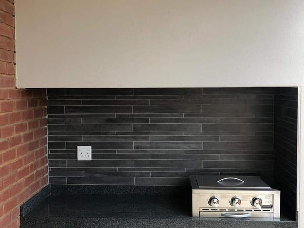 Private undercover patio: Enjoy relaxed entertaining with a built-in gas braai and a pretty view of the entrance of Meerhof the perfect spot to unwind.