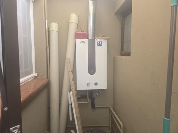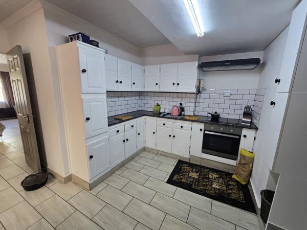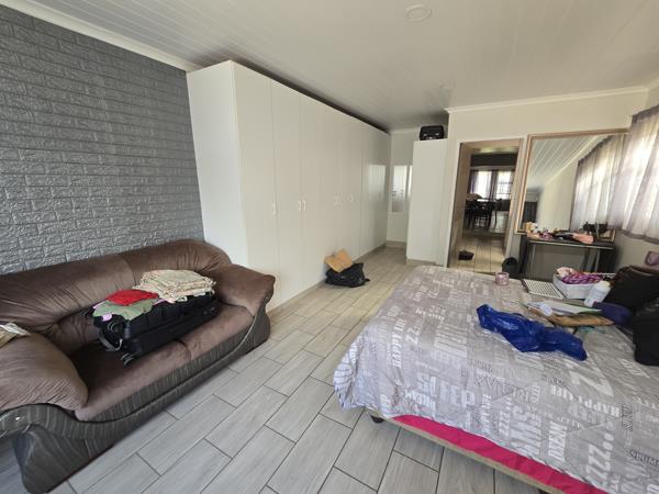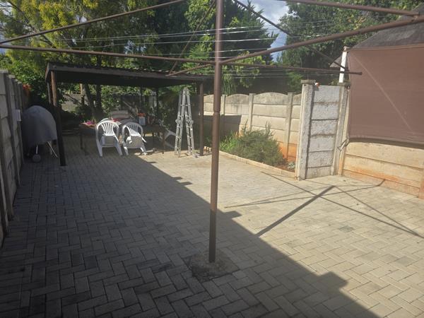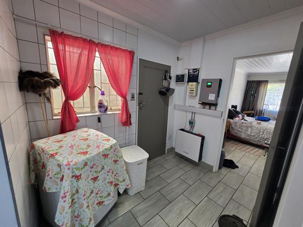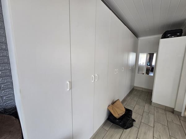 The property features a courtyard equipped with washing lines and a small carport, along with cement paving in the rear. It includes built-in wardrobes, curtain rails, and PVC ceilings throughout. The main bedroom boasts an en-suite bathroom, while the kitchen is fitted with an extractor fan, an under-counter oven, and a gas hob. The bathroom offers a bath, toilet, basin, and a shower. The open-plan living area seamlessly connects to the kitchen, and there is a second bedroom. Additionally, you''ll find a small garden in the front, a carport, and a secure lock-up garage.