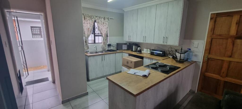 This 3 bedroom Townhouse is available from the beginning of March because the owner is going to work out of town. It is situated in a quite area, and there are only 3 Townhouses in this complex making it ideal for peace of mind. It has a modern kitchen with plenty of storage space and it overlaps into the living room. The main bedroom has ensuite bathroom with a shower. The two other bedrooms are spacious making it ideal for growing family. There are a few schools within the radius of 5km and it is not far from the shopping center.