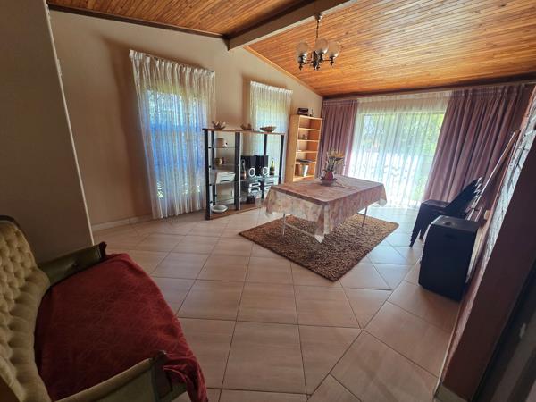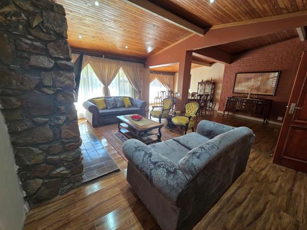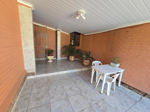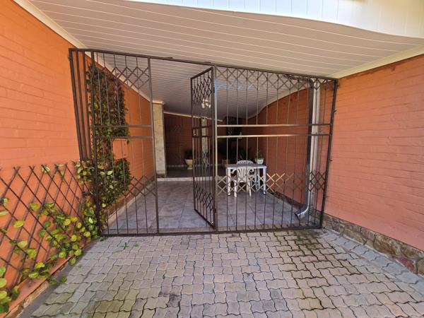 A charming freestanding 3-bedroom house in Irene Park. This property features built-in wardrobes, an inviting open-plan lounge and dining area, and a cozy fireplace perfect for chilly winter evenings. The kitchen includes a breakfast nook and is equipped with an eye-level oven and hob, along with sliding doors that lead to the outdoor space. For your safety, the home is fitted with burglar bars and has an electric gate for easy access. Enjoy the elegant wooden ceilings and a combination of tiled and laminated flooring throughout. The property is fully walled and comes with security cameras for added peace of mind.
