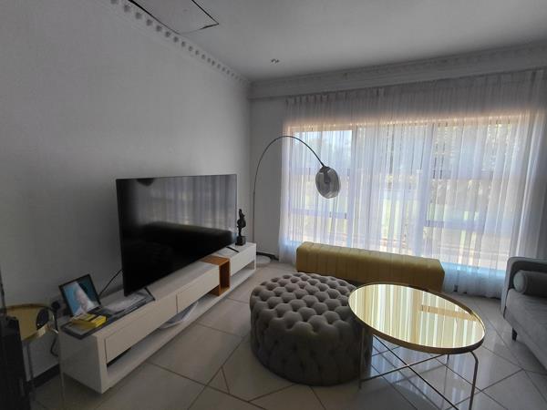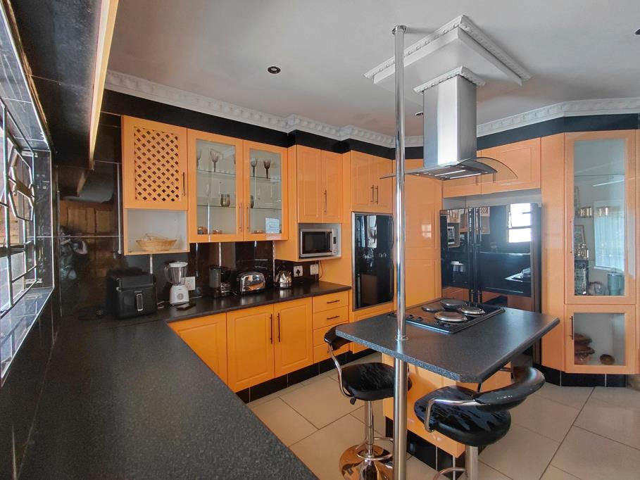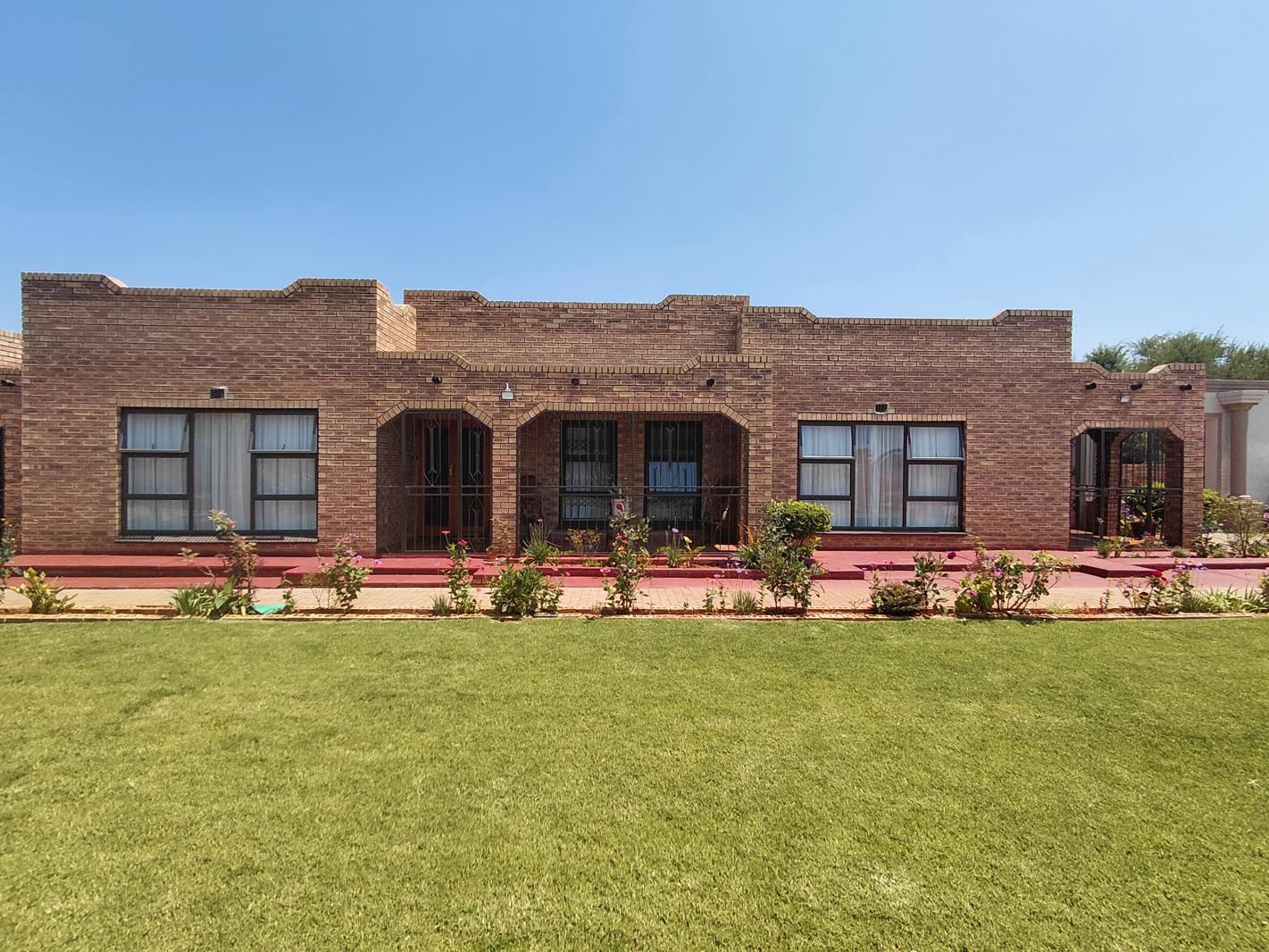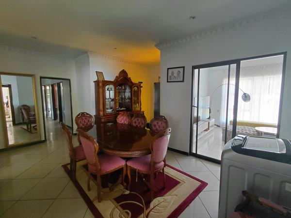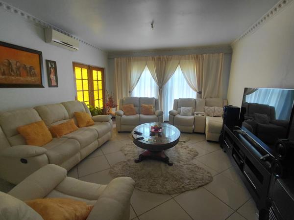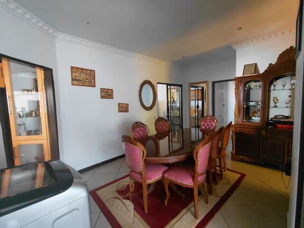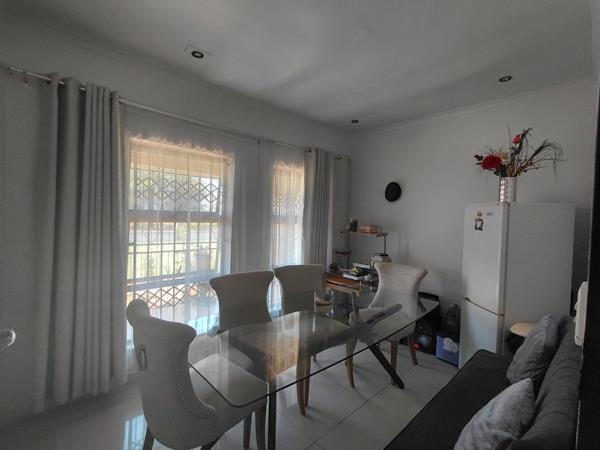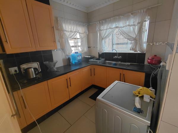 a generously sized 4-bedroom house in Orkney Vaal Park, featuring 2 bathrooms, 2 TV rooms, and a dining room. The property includes a modern kitchen with a pantry, along with two spacious garages and a back room that offers a bathroom and living area.