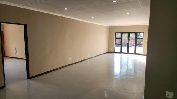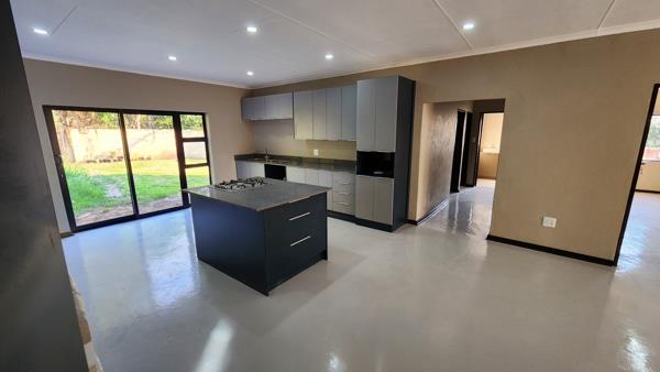 Modern and Stylish 3 Bedroom house to rent in Brits. Beautiful open plan Kitchen area with lots of built-in cupboards and large living area. Big backyard, Garden, Prepaid electricity, communal borehole for water is included.