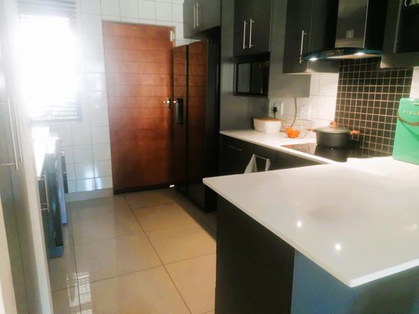 Step into an expansive open-plan kitchen and lounge designed for the modern minimalist. The ground floor is bathed in abundant natural light, creating a warm and airy atmosphere. The living area features sleek sliding doors that retract fully, blurring the line between your interior and a private, built-in braai area and manicured gardenideal for weekend relaxation. For added convenience, a stylish guest toilet is located downstairs.