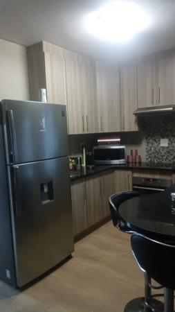 The kitchen offers ample cupboard space and is designed for everyday functionality. Natural light flows throughout the apartment, enhancing the calm and homely feel of the space.