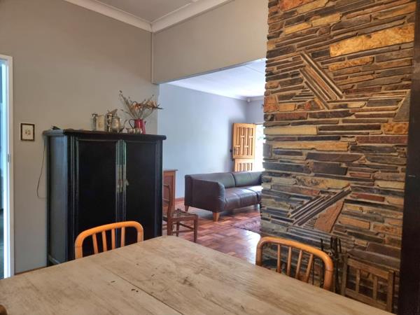 The main living areas comprise a comfortable lounge, a dedicated dining room, and an additional family TV room, offering ample space for relaxation and entertaining. Original cement and parquet flooring add character. Outdoors, a private backyard features an open built-in braai, ideal for social gatherings. The beautiful garden benefits from the borehole and a sprinkler system, ensuring lush greenery. A cosy fireplace enhances the home''s inviting atmosphere.