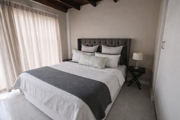 Comfortable Bedroom: A well-sized, cozy bedroom featuring built-in cupboards and elegant lighting.