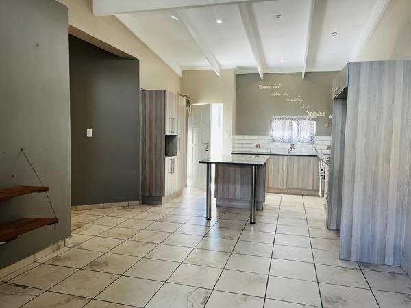 Step outside to a private patio with a built-in braai, ideal for entertaining, overlooking a beautiful, well-maintained garden that adds warmth and tranquility to the home.