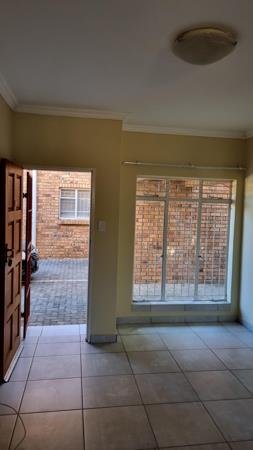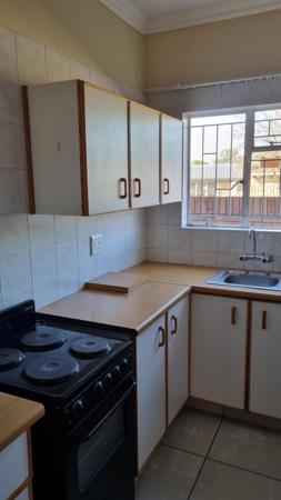 This neat and tidy bachelor apartment is situated on the ground floor of a secure complex that is fully walled, has electric fencing and electronic access gates. The complex is ideally located in close proximity to the SANDF, Mediclinic and Witrand Hospitals, several state departments, as well as shops and gas stations. The apartment features an open plan lounge and sleeping area with a neat kitchen. The bedroom area has ample built in closets and bookshelves, while the kitchen has built in cabinets, a single sink and a full-size freestanding stove. The bathroom has a basin with vanity, toilet and shower. All the windows have burglar bars, and there is also a security gate at the front door. The apartment is fully tiled, and water is included in the monthly rent. The apartment has prepaid electricity, and one covered parking space. Available immediately. Call me today to arrange a viewing!
