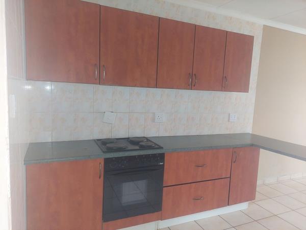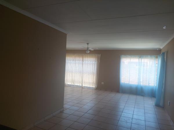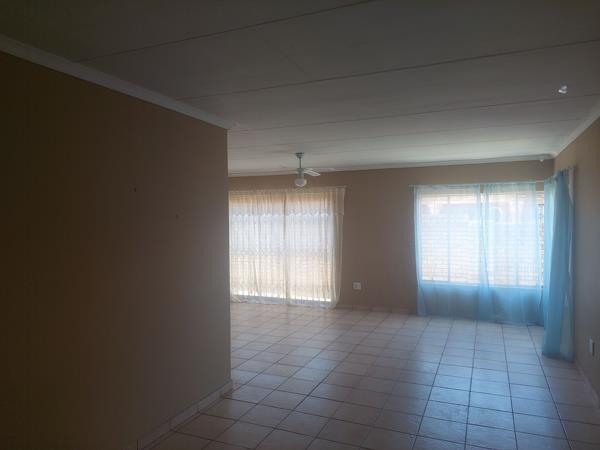 The house consists of a spacious kitchen with lots of cupboards and a scullery with a washing machine point, spacious living area and dining room and three bedrooms with built in cupboards.