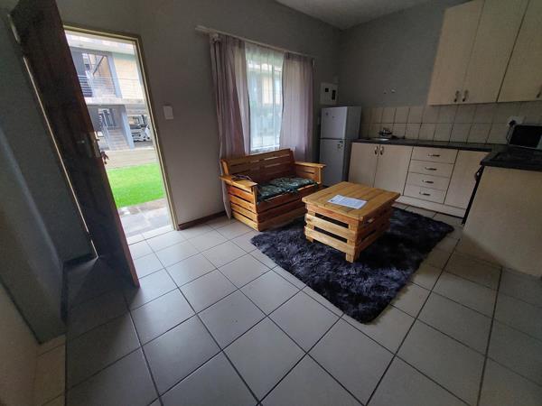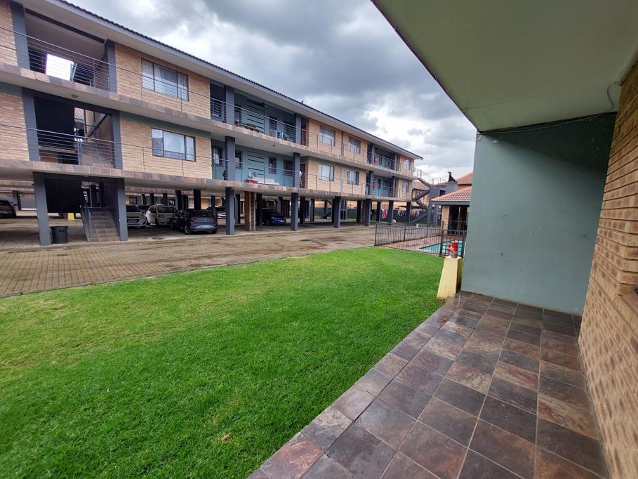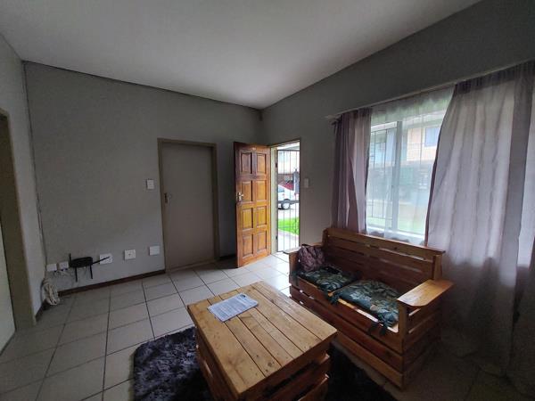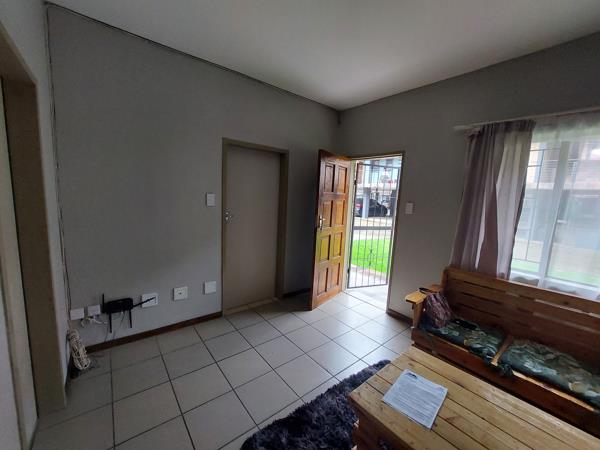 Comfortable and spacious two-bedroom apartment situated on the ground floor of a lively complex with a communal swimming pool and braai facilities, ideal for students or young working people. The complex is fully walled, has electric fencing, electric access gates a well as a laundromat for the exclusive use of the complex occupants. The apartment features an open plan lounge and kitchen. The kitchen has built-in cupboards and an under-counter oven with four-plate hob. There are two bedrooms, both with built-in closets and study desks, as well as one bathroom with a shower, toilet and basin. The apartment is fully tiled, has one covered parking space and prepaid electricity. Water is included in the monthly rent. Available- immediately. Call me today to arrange a viewing!