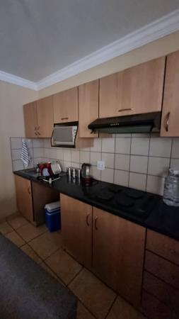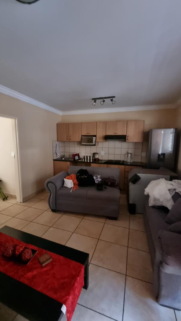 This spacious one-bedroom apartment on the 2nd floor is located in a secure complex that is fully walled and has electric fencing, an electric gate and security cameras. The apartment has a spacious open plan lounge and kitchen. The kitchen has built in cabinets, granite tops, a four-plate hob with extractor fan and a washing machine connection. There is also one bedroom with built in closets, a private-use balcony and full on-suite bathroom with a shower, tub and basin. The apartment is fully tiled and has burglar bars, a security gate, prepaid electricity and one covered parking space. The complex also has communal braai facilities and is within walking distance of shops and other amenities. Available from 1 February 2026. Dont wait call me today to arrange a viewing!