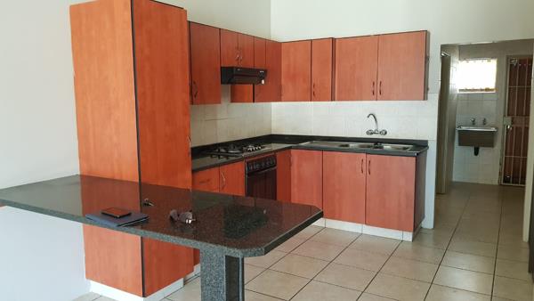 Very spacious one bedroom apartment situated on the ground floor of a neat complex that is ideally located within walking distance of amenities such as grocery stores and gas stations, and roughly 2.4 kilometres from the Mooirivier Mall and Canal Crossing. The complex is fully walled and has electric fencing and electric access gate. The apartment has a spacious open plan lounge and kitchen - the kitchen has built in cabinets, an electric under counter oven with four plate gas hob and extractor fan. The apartment has one bedroom with built in closets and a separate bathroom with a tub, basin and toilet. The apartment is fully tiled, and also a separate laundry area with a back door. The apartment has one undercover parking space and prepaid electricity, as well as a security gate and burglar bars. Water is included in the monthly rent. Available from 1 January 2026. Call me to arrange a viewing!