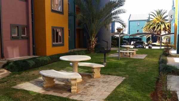 The complex boasts lush green gardens with braai areas and a swimming pool, perfect for enjoying the outdoors on hot summer days. Please note that the kitchen photos are for marketing purposes only.