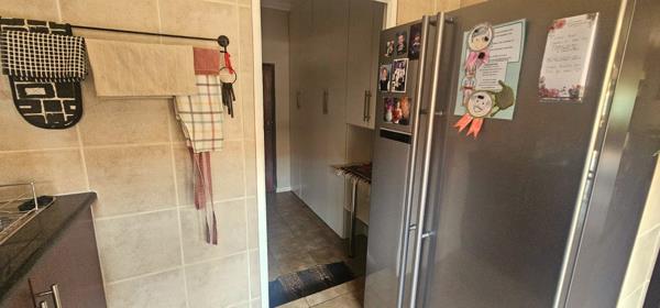 Upstairs, the property boasts a spacious patio with a built-in gas braai, ideal for entertaining. The unit offers three well-sized bedrooms, with the main bedroom featuring an en-suite bathroom and a walk-in closet.