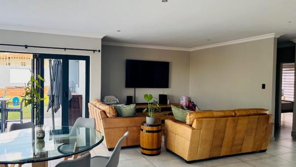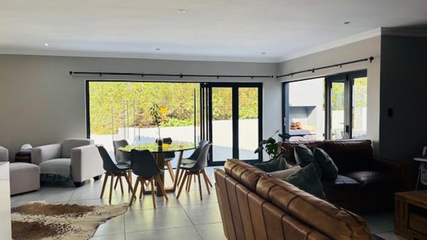 This property offers three spacious bedrooms and two full bathrooms, a large open-plan living area and dining room, and a very modern kitchen with ample cupboard space and a separate scullery.