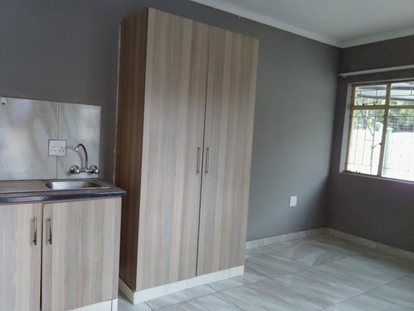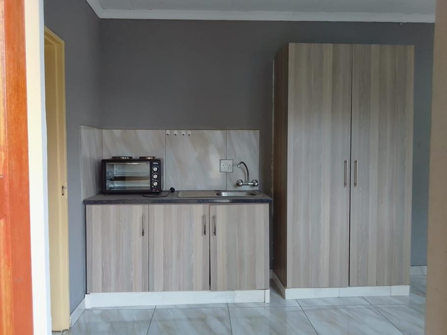 Neat and secure bachelor unit featuring an open-plan living and sleeping area, a functional kitchen, and a private bathroom fitted with a shower. The unit is situated in a well-maintained yard with multiple units and offers excellent security, including an electric fence.