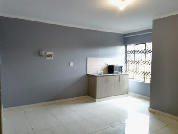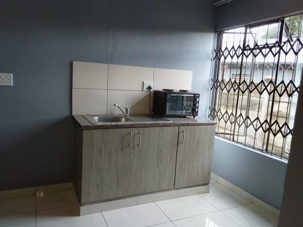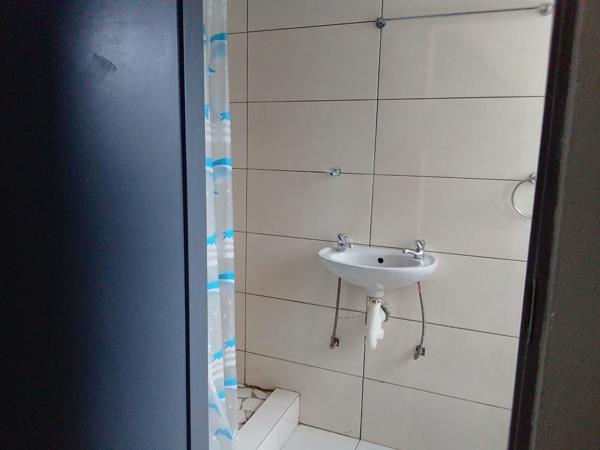 Neat and secure bachelor unit featuring an open-plan living and sleeping area, a functional kitchen, and a private bathroom fitted with a shower. The unit is situated in a well-maintained yard with multiple units and offers excellent security, including an electric fence.