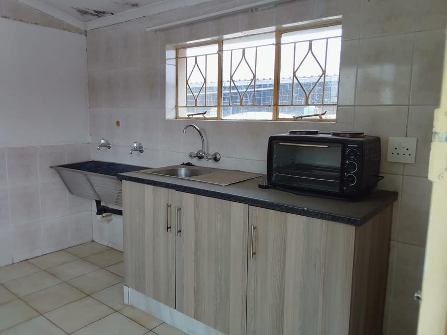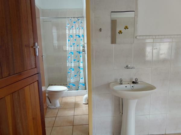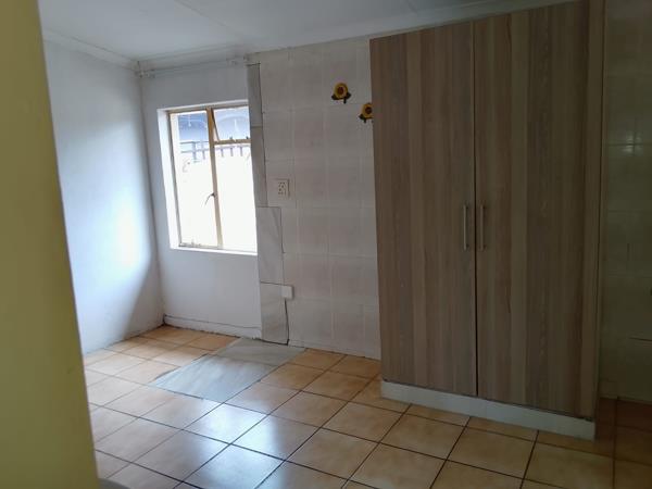 Neat and secure bachelor unit featuring an open-plan living and sleeping area, a functional kitchen, and a private bathroom fitted with a shower. The unit is situated in a well-maintained yard with multiple units and offers excellent security, including an electric fence.
