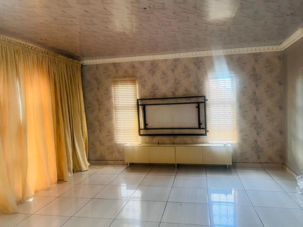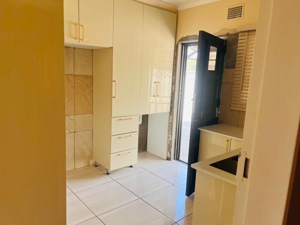 Beautiful 3-bedroom, 2-bathroom home with a modern kitchen, spacious lounge, and domestic quarters. Includes 1 garage and open parking. The property features a private garden and is pet-friendly ideal for comfortable family living.