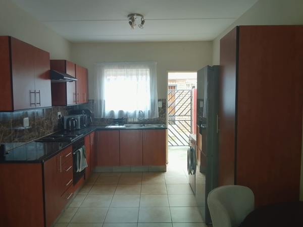 This well-maintained property offers comfortable and secure living in a sought-after complex. It features three spacious bedrooms with built-in cupboards and two bathrooms, including a main ensuite. The modern kitchen flows into an open-plan lounge area, creating a welcoming living space for families or professionals.