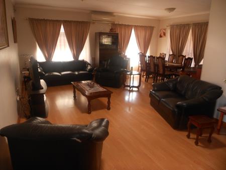 Lovely family home offering 3 bedrooms, 2 bathrooms. Lounge with air-con. Kitchen with oven&hob. Oustdie brai area and sparkling pool. Double garage. Water, sewage and refuse excluded, pre paid electricity. Pet friendly.