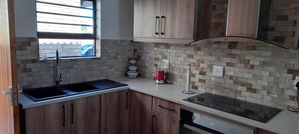 Upmarket townhouse to rent in a secure complex. Offering 3 bedrooms, 2 bathrooms , a beautiful kitchen with glass top stove and a double garage .Small pets are allowed and the complex is situated nearby a shopping complex.