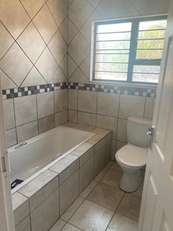 Lovely renovated 3-bedroom apartments. 1 Bathroom with shower, toilet and basin in the entertainment area, kitchen with built-in cupboards and open plan lounge. Bedroom with built-in cupboards. 1 Complete bathroom with bath, toilet, basin and shower. Floors are tiled an burglar bars. Lovely secure area. Not pet friendly. Water is included and prepaid electricity. (Owner is still busy with renovations. Will place photos as soon as all is done)