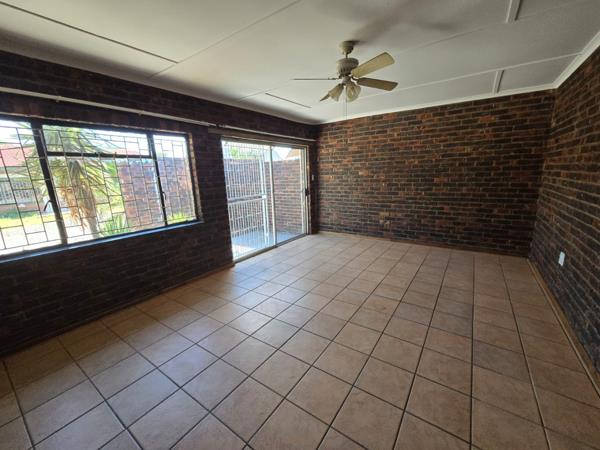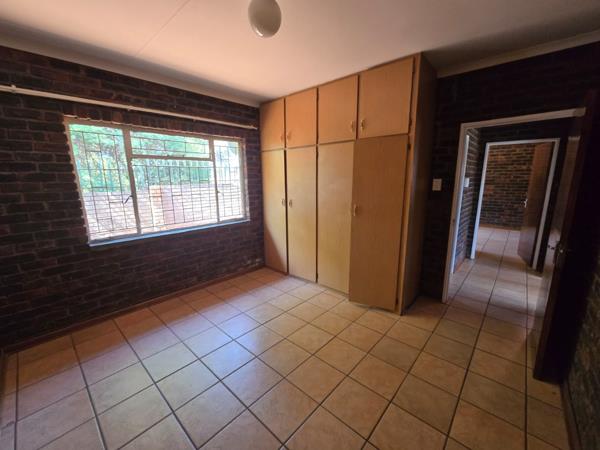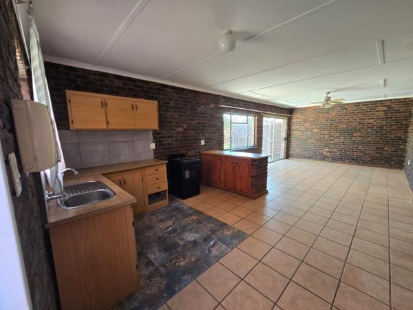 This inviting 2-bedroom, 1-bathroom rental home in Kuruman offers practical living. The open-plan layout seamlessly connects the lounge and kitchen, featuring durable tiled flooring and ample natural light. Exposed brick walls add character throughout the interior. The kitchen includes wooden cabinetry and a freestanding stove, complemented by an integrated breakfast bar. Both bedrooms are fitted with built-in wardrobes and benefit from natural light, enhanced by ceiling fans for comfort. Security is prioritized with a security gate, window bars, and an intercom system. The property includes one dedicated parking bay, providing a secure and functional space for residents.