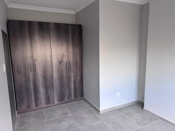 One modern bedroom flat to rent close to major malls, CBD and schools. Bedroom with aircon and built-in cupboards. Bathroom with shower. Open-plan lounge and kitchen with aircon, built-in cupboards, glass-top hob, and under-counter oven. Secure parking. Communal swimming pool with braai area for relaxation and entertainment. Garden and lawn for outdoor enjoyment. Free high-speed WIFi and water included. Electricity billed separately. Rental Requirements: No children, No pets clean credit record. Ideal for single professionals or couples.