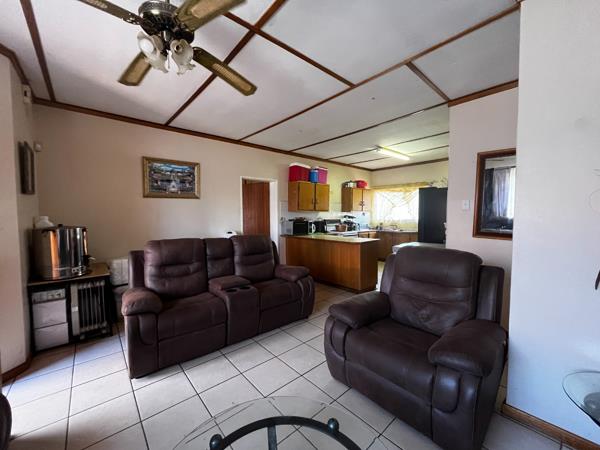 Inside, you''ll find a welcoming open-plan living area that flows nicely into the kitchen. The lounge is bright with natural light and features tiled floors and a ceiling fan to keep things breezy. The kitchen comes with wooden cabinets, tiled flooring, and space for your appliances, including a standalone stove. Its a functional space ready for your culinary adventures.